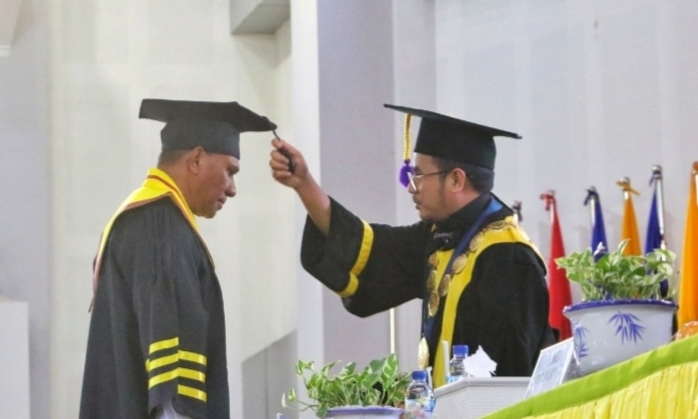 Namun ketika namanya dipanggil sebagai doktor baru, sorot mata Johni Asadoma tak lagi sekeras saat ia berdiri di atas ring tinju puluhan tahun lalu. Ada getar haru yang tak bisa disembunyikan.