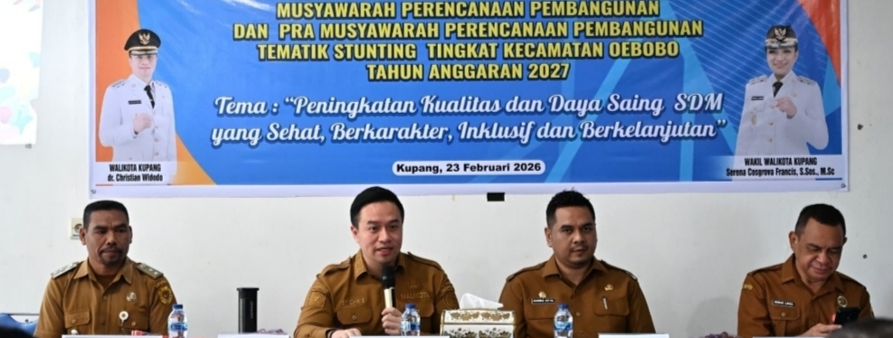 KUPANG – Wali Kota Kupang dr. Christian Widodo menghadiri Musyawarah Perencanaan Pembangunan (Musrenbang) Tingkat Kecamatan Oebobo untuk Tahun Perencanaan 2027 yang digelar di Aula Kantor Camat Oebobo, Senin (23/2/2026).